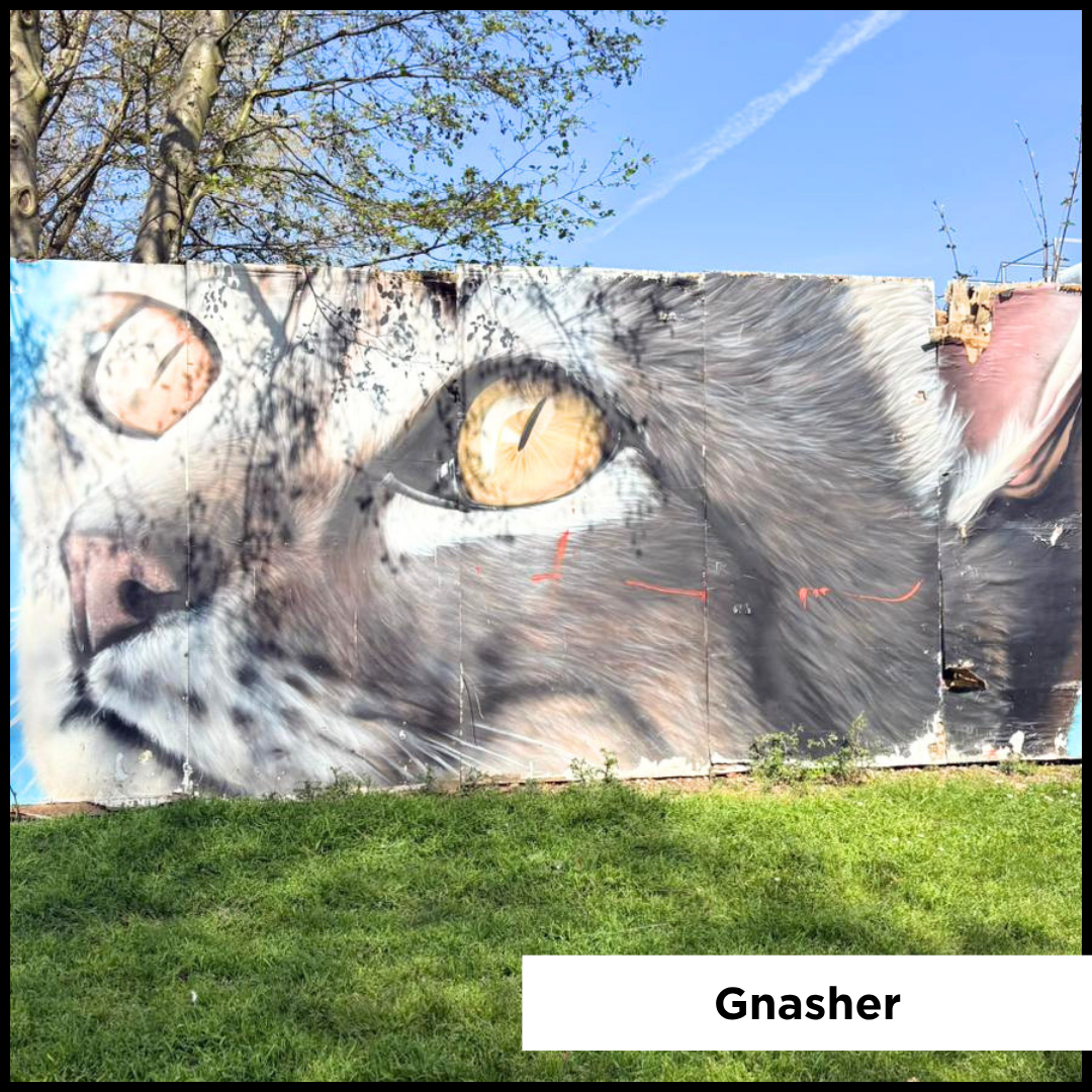 Gnasher created this Paws for Thought mural for the festival. His other work in Chelmsford is the Hedgehog on Tindal Street which was commissioned by Essex Wildlife Trust to bring attention to the plight of the hedgehog.