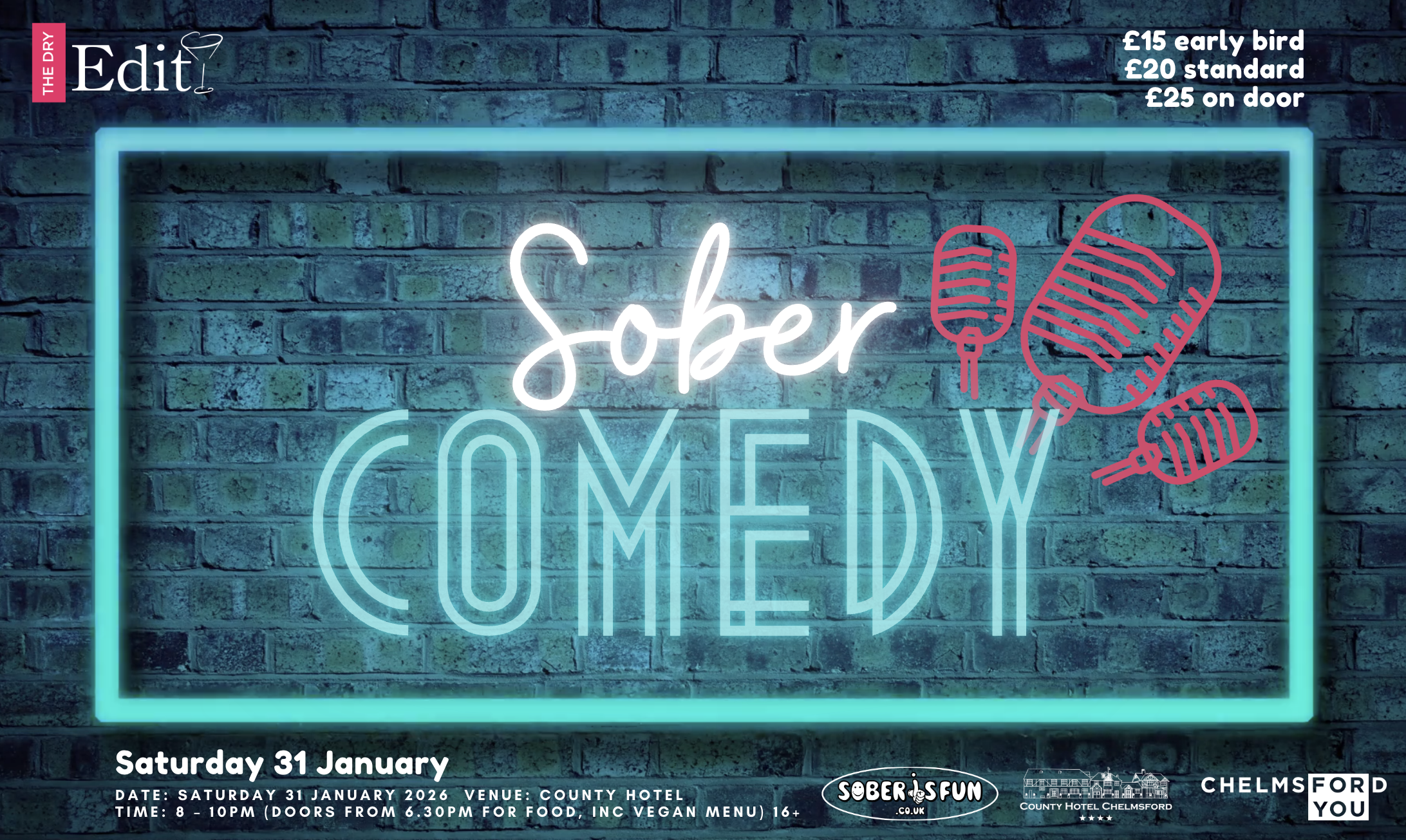 Great comedy doesn’t need alcohol. Experience a night of top stand-up featuring James Redmond, Maureen Younger and Mike Gunn, in a fully alcohol-free setting with the UK’s original alcohol-free comedy club, Sober IS Fun.